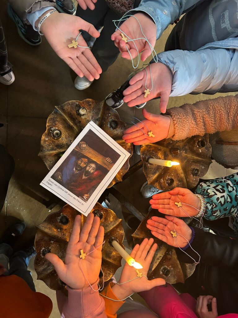 Die Kinder des katholischen Religionsunterrichts im 4. Jahrgang haben diese Woche einen Kinderkreuzweg gestaltet. Eine Station war im Reinheimer Pflegeheim,