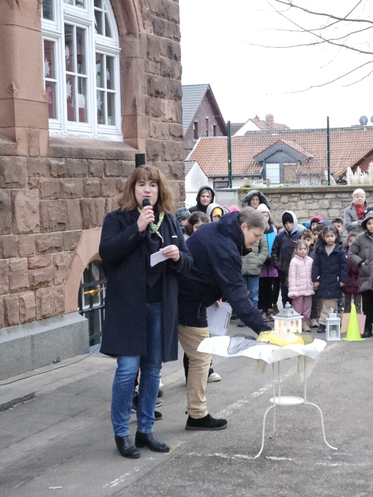 Ein Funke Mut- Unter diesem Motto stand das Friedenslicht 2025, dass auch in diesem Jahr an die Gersprenzschule gebracht wurde.